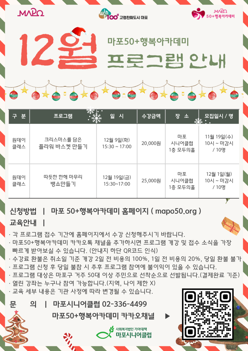 - 마포시니어클럽 02-336-4499 (행복아카데미 담당자)